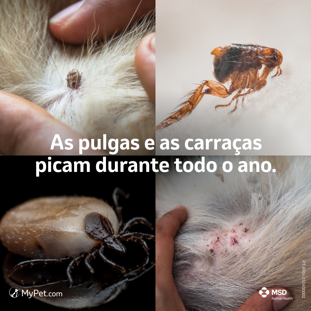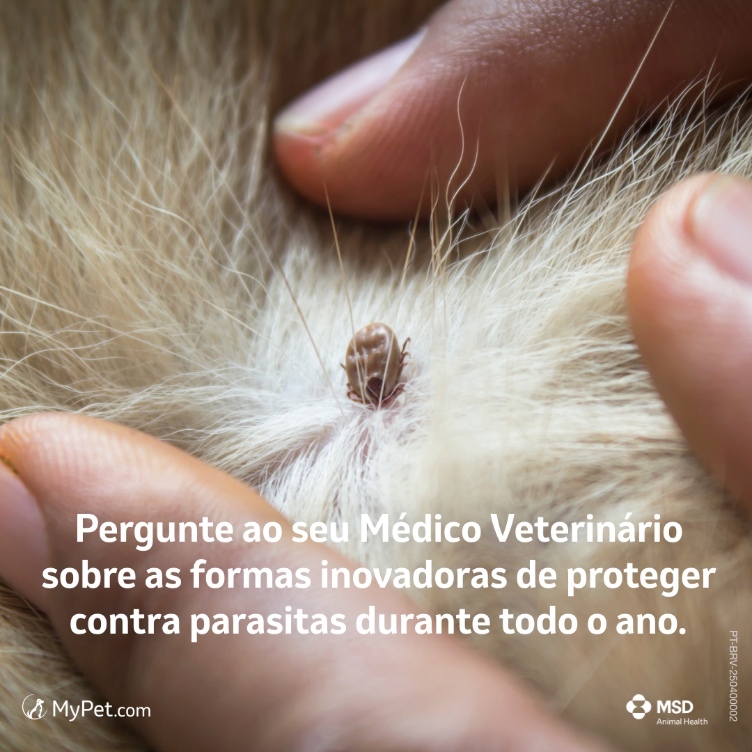 Um conjunto de materiais focados em enfatizar a importância da proteção contínua contra os parasitas para prevenir as doenças transmitidas por vetores e potenciar o papel do Médico Veterinário como fonte de informação para os tutores.